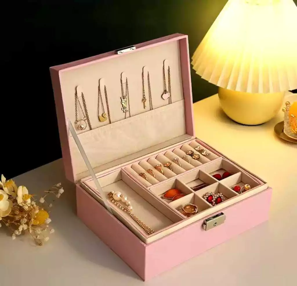 Caja alhajero joyas accesorios dos capas con Tapa y llave.
